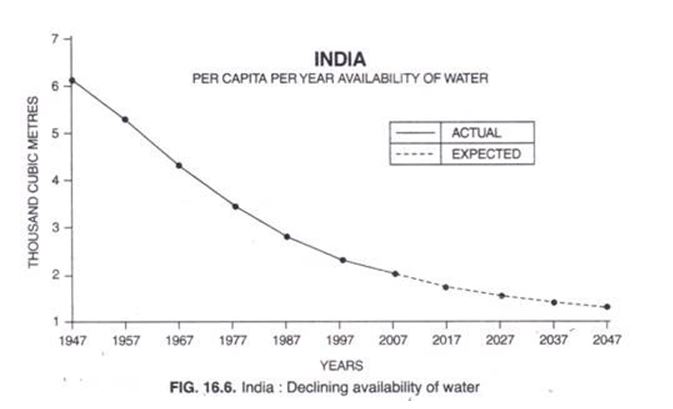 নাসার গবেষকরা ২০০৩ থেকে ২০১৩ অবধি পৃথিবীর ৩৭টি বৃহত্তম জলাধার নিয়ে গবেষণা করেছেন। তাতে দেখা যাচ্ছে, সিন্ধুনদ অববাহিকা অঞ্চলে ভূগর্ভের জল অতিমাত্রায় সংকুচিত হচ্ছে পাকিস্তানে জনসংখ্যা ঝড়ের বেগে বড় হওয়ার ফলে। শুধু কৃষি উৎপাদনেই এদেশে ব্যবহৃত হচ্ছে ৮০ শতাংশ জল। এবং সেখানে নতুন করে জল সঞ্চয়ও হচ্ছে না। বর্তমান বিশ্বে বেশিরভাগ দেশেই ধান উৎপাদনে ব্যবহৃত হয় ভূগর্ভের জল। বাংলাদেশও এর ব্যতিক্রম নয়। এখানে সম্প্রতিকালে ৪.২ মিলিয়ন হেক্টর জমির ধান চাষে খরচ করা হচ্ছে ভূগর্ভের জল। নদনদী, খালবিলের জল ব্যবহৃত হচ্ছে ১.৩ হেক্টর কৃষিজমিতে। এশিয়া মহাদেশে শুধুমাত্র ভারত, পাকিস্তান, বাংলাদেশ এবং চীনের উত্তরাঞ্চল মিলে প্রতি বছর ৩৮০ থেকে ৪০০ কিউবিক কিলোমিটার ভূগর্ভের জল ব্যবহার করে। ফলে মাথাপিছু জলের পরিমাণ কমছে। সেটা ১০০ বছরে কিভাবে কতটা হ্রাস পেয়েছে বা পাচ্ছে, তার দৃষ্টান্ত হিসেবে বিশাল জনসংখ্যার দেশ ভারতের একটি গ্রাফিক চিত্র এখানে সংযোজন করা হলো –