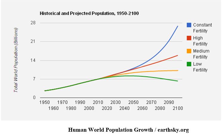 সুতরাং যারা দ্রুত পপুলেশন কমে যাওয়ার ব্যাপারে উদ্বিগ্ন হচ্ছেন, অন্তত ২১০০ সাল নাগাদ তাদের উদ্বেগের কোনো কারণ নেই। বিশ্বে জনসংখ্যা বাড়ার প্রবণতা অতীতে কী অবস্থায় ছিল এবং ভবিষ্যতে কেমন থাকবে, তার একটি চার্ট এখানে উপস্থাপন করা হলো।