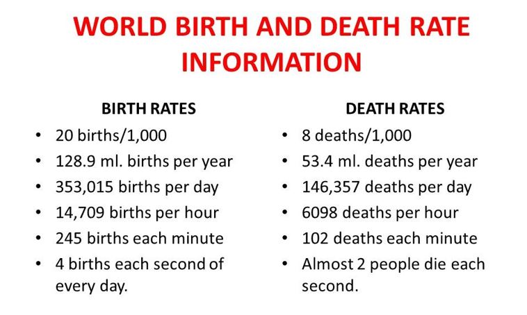 ২০১৪ সালের বিশ্ব স্বাস্থ্য সংস্থার রিপোর্ট অনুযায়ী, জিরো থেকে ১৪ বছর বয়স পর্যন্ত শিশুর সংখ্যা ছিল ১৯০ কোটি। এই সংখ্যাটি তখনকার (২০১৪ সালের) মোট জনসংখ্যার ২৭ ভাগ। অর্থাৎ এক যুগ অতিক্রম করতেই (১৪ বছর) প্রায় দুশো কোটি মানুষের চাপ বেড়েছে সৌরজগতের ছোট্ট গ্রহটির ওপরে। ওই বছরই ইউনিসেফ আর বিশ্বব্যাংকের রিপোর্ট থেকে জানা গিয়েছিল, ১৯৯০ থেকে ২০১৩-এর মধ্যে শিশুমৃত্যুর হার কমেছে ৫০ শতাংশ। ২০৩৫ সাল নাগাদ মৃত্যুর হার কমে আসবে শতকরা শতভাগ। শিশু জন্মের তথ্যউপাত্তগুলোও জানিয়ে দিচ্ছে, প্রতি বছর মানবসংখ্যার হ্রাস নয়, বেড়ে যাওয়ার গাণিতিক হিসেবই তারা উপস্থিত করছে। যেমন, ২০১৮-এর ১লা জানুয়ারি বিশ্বে মোট শিশু জন্মেছিল ৩৮৬,০০০। ২০১৯-এর এই দিনে ৩৯৫,০০০। ২০২০-এর প্রথম দিনের সংখ্যাটি ছিল ৪০০,০০০। সত্যি বটে উত্তর আমেরিকা, রাশিয়া, জাপান, ইউরোপসহ সারা বিশ্বেই প্রতি নারীর ক্ষেত্রে গড়ে ফার্টিলিটির রেট কমেছে। কিন্তু তার মানে এই নয়, পৃথিবী জুড়ে মোট শিশুজন্মের সংখ্যা আগের তুলনায় হ্রাস পেয়েছে। কারণ জনসংখ্যার আকার যত বড় হবে, প্রতি নারীর ক্ষেত্রে জন্মহার কম থাকা সত্ত্বেও মোট জন্মসংখ্যা তারপরও বেড়েই চলবে।