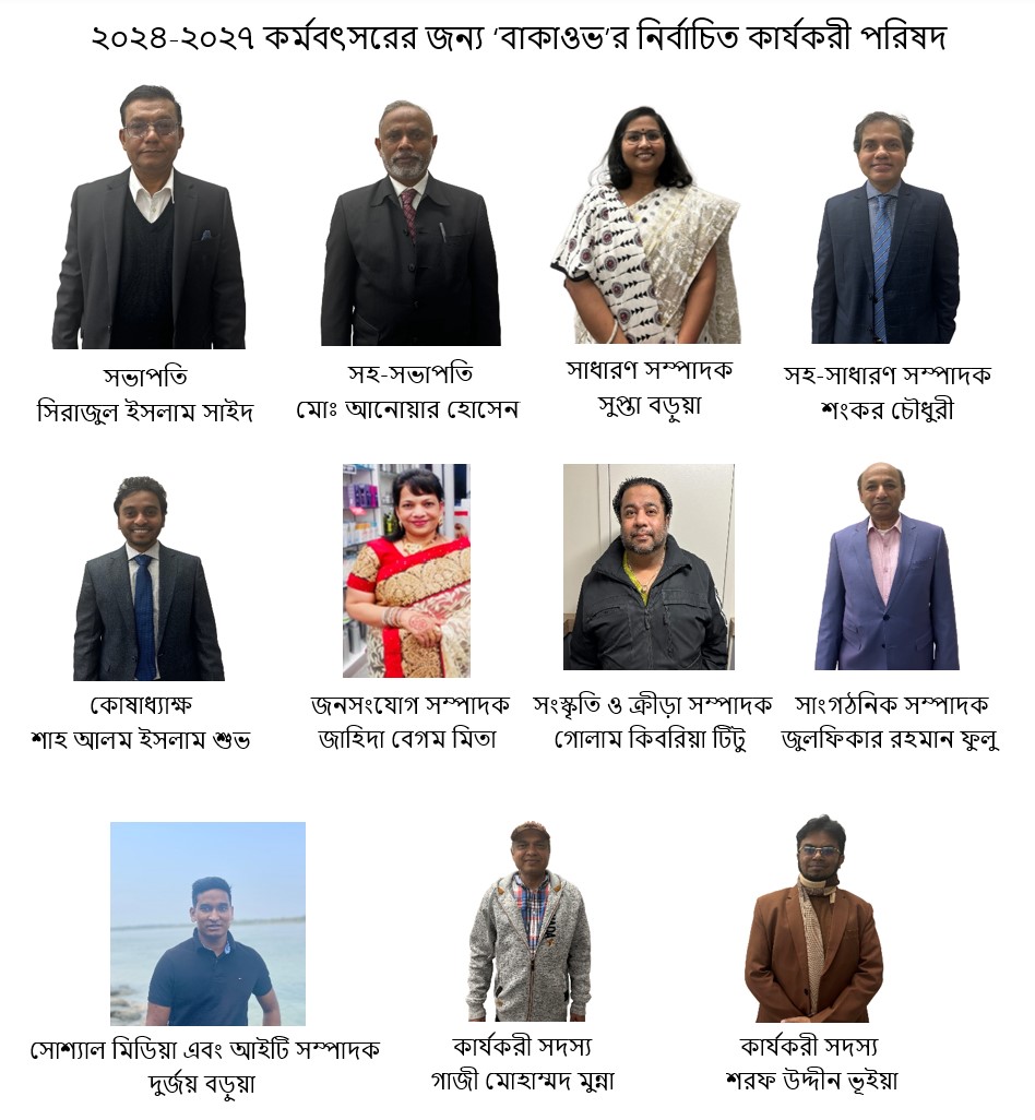 আশ্রম সংবাদঃ ২১ এপ্রিল ২০২৪, কানাডার রাজধানী অটোয়ার প্রথম বাংলাদেশী সংগঠন, বাংলাদেশের মুক্তিযুদ্ধের জাতক, সম্পূর্ণ অসাম্প্রদায়িক একটি সংগঠন, “বাংলাদেশ কানাডা এ্যাসোসিয়েশন অব অটোয়া ভ্যালীর ২০২৪-২০২৭ কার্যকরী বৎসরের নির্বাচনে সিরাজুল ইসলাম সাইদ সভাপতি এবং সুপ্তা বড়ুয়া সাধারণ সম্পাদক হিসেবে নির্বাচিত হয়েছেন। বাকাওভের ১১ সদস্য বিশিষ্ট কার্যকরী পরিষদের অন্যান্য নির্বাচিত সদস্যরা হলেন যথাক্রমে, সহ-সভাপতি মোঃ আনোয়ার হোসেন; সহ-সাধারণ সম্পাদক শংকর চৌধুরী; কোষাধ্যাক্ষ শাহ আলম ইসলাম শুভ; জনসংযোগ সম্পাদক জাহিদা বেগম মিতা; সংস্কৃতি ও ক্রীড়া সম্পাদক গোলাম কিবরিয়া টিটু; সাংগঠনিক সম্পাদক জুলফিকার রহমান ফুলু; সোশ্যাল মিডিয়া এবং আইটি সম্পাদক দুর্জয় বড়ুয়া; কার্যকরী সদস্য গাজী মোহাম্মদ মুন্না ও শরফ উদ্দীন ভূইয়া। এছাড়া সংগঠনের পরিবর্তীত ও সংশোধিত নতুন সংবিধান অনুযায়ী, সার্বিকভাবে সংগঠন এবং কার্যকরী পরিষদকে সাহায্য-সহযোগিতা করা এবং ঠিক সময়মত ‘বাকাওভের’ কার্যকরী পরিষদের নির্বাচন পরিচালনা করার জন্যে আগামী ছয় বৎসরের (২০২৪-২০৩০) জন্যে পাঁচ সদস্য বিশিষ্ট উপদেষ্টা পরিষদের নির্বাচন সম্পন্ন করা হয়। নির্বাচিত উপদেষ্টা পরিষদের সদস্যবৃন্দ হলেন যথাক্রমে, বীর মুক্তিযোদ্ধা মোঃ আনোয়ার হোসেন, সুলতানা শিরীন সাজি, গুলজাহান বেগম রুমি, শৈলেস দেব এবং কবির চৌধুরী। উল্লেখ্য যে, আয়োজিত উভয় পরিষদের নির্বাচনে প্রতি পদের জন্য একজন করে প্রার্থী থাকায় নির্বাচনী তফশিল অনুযায়ী ২১শে এপ্রিল ২০২৪ স্থানীয় ব্রনসন সেন্টারে নির্বাচনে অংশ গ্রহণকারী সকল প্রার্থিদেরকে বিজয়ী বলে ঘোষণা করা হয়।