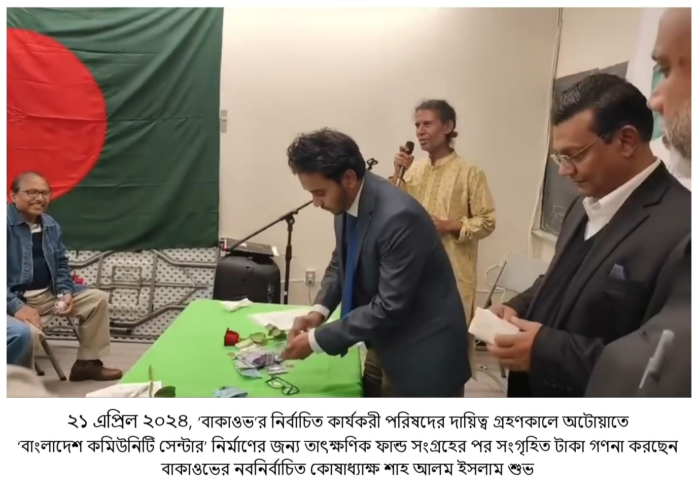 ‘বাকাওভ’ নির্বাচন পরিচালনা ও অন্তর্বর্তীকালীন কমিটির সদস্য কবির চৌধুরীর সভাপতিত্বে এবং কমিটির সদস্য রিয়াজ জামানের সঞ্চালনায় ‘বাকাওভের’ নবনির্বাচিত পরিষদের কাছে দায়িত্ব অর্পণের সময় রিয়াজ জামান গত ১ অক্টোবর ২০২৩ থেকে ২১ এপ্রিল ২০২৪ পর্যন্ত ‘বাকাওভের’ দায়িত্বকালীন সময়ের আর্থিক হিসাব তুলে ধরেন এবং নির্বাচনে অংশগ্রহণকারী প্রার্থীদের কাছ থেকে নমিনেশন ফি বাবৎ আদায়কৃত $৬০০.০০ ডলার হতে গত কয়েকমাস সংগঠনের আনুষাঙ্গিক কিছু ব্যয় ও নির্বাচনী খরচ বাদে উদ্ধৃত্ত $৮৬.৭১ ডলার নতুন কমিটির কাছে হস্তান্তর করেন। এই আপাতকালীন দায়িত্ব পালনের কথা এবং ফাইনান্সিয়াল রিপোর্ট জমা দিতে গিয়ে রিয়াজ জামান বলেন যে, “সংগঠনটিকে অটোয়ার সবার কাছে গ্রহণযোগ্য করতে হলে প্রথমেই নির্বাচিত কমিটিকে সংগঠনের ফাইনান্সিয়াল দিক, বিশেষ করে সংগঠনের হিসাব-নিকাশ স্বচ্চ রাখতে হবে। সংগঠনের জন্য একটি একাউন্ট খুলতে হবে। কানাডার মত বহুবাজিক সমাজ ব্যবস্থায় একটি অলাভজনক প্রতিষ্ঠানের চাহিদা অনেক। এখানে ইচ্ছা করলে কমিউনিটির জন্যে সরকারী এবং বেসরকারীভাবে অনেক কিছুই করা যায়। এর জন্যে প্রয়োজন সঠিক একটি ফাইনান্সিয়াল রিপোর্ট। এদেশে কোনো ধরনের আর্থিক সহযোগীতা নিতে হলে কমপক্ষে তিন বছরের ‘ফাইনান্সিয়াল রিপোর্ট’ দাখিল করতে হয়। রিয়াজ বলেন, আমি আশা করবো, নতুন নির্বাচিত কমিটি গত ৫২ বছরের অভিজ্ঞতা থেকে শিক্ষা নিয়ে সংগঠনের “ফাইনান্সিয়াল” হিসাবের রক্ষণা-বেক্ষণ করবেন। আজকে, আমরা আপনাদের কাছে নমুনা হিসেবে আমাদের সময়ের ফাইনান্সিয়াল ব্যালান্স সিট দিচ্ছি। আশা করি তা আপনাদের কাজে লাগবে।“